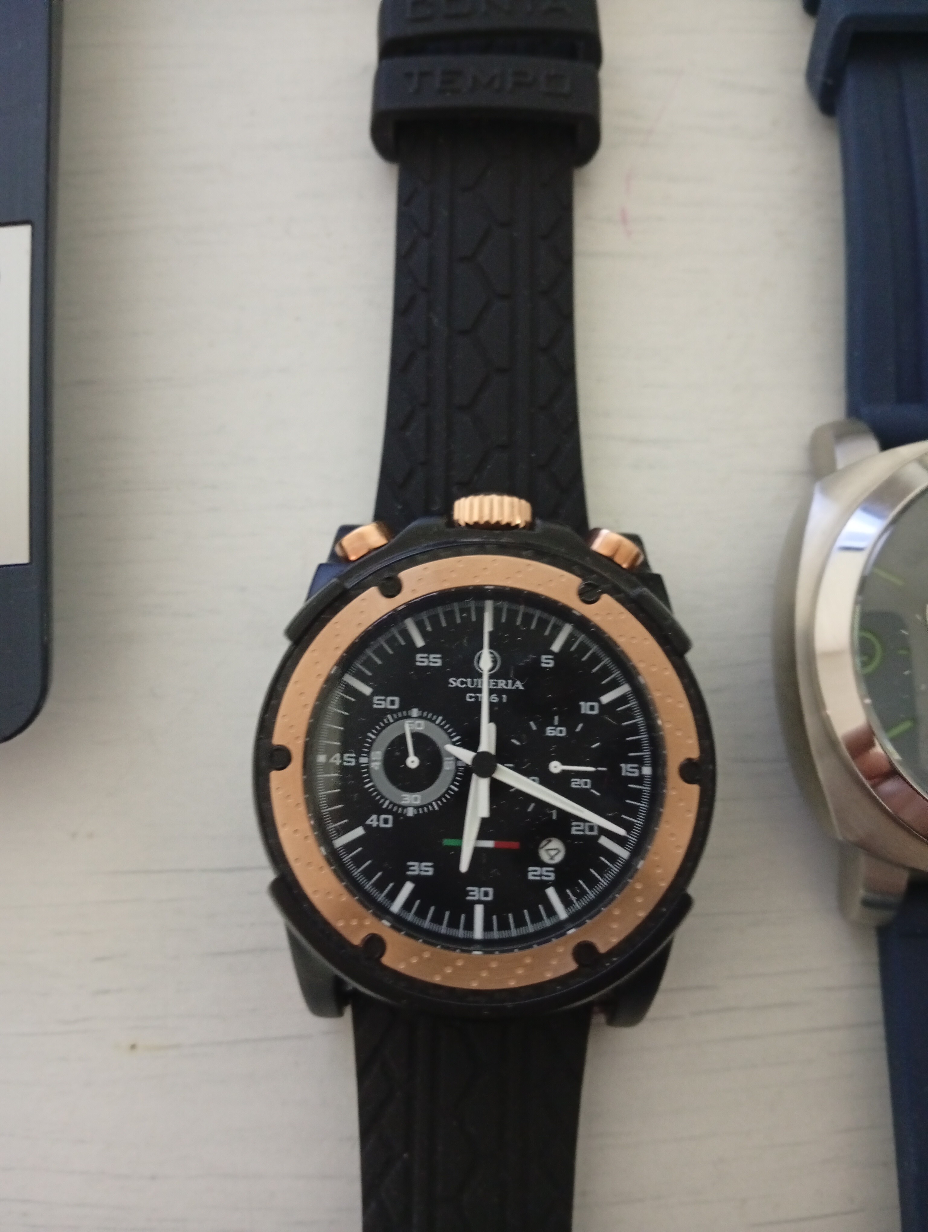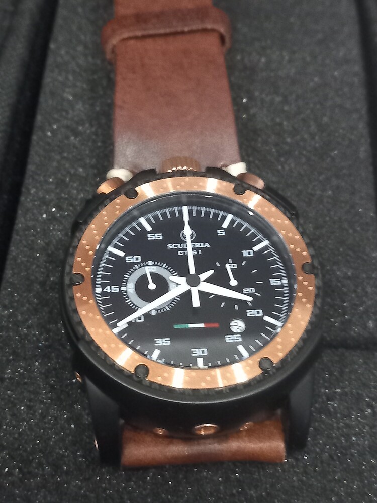 Con muchas dudas por qué me gusta mucho saco el CT Scuderia. Precioso y al menos para mí muy original Bullhead de cuarzo, de la micromarca italiana Conta Tempo