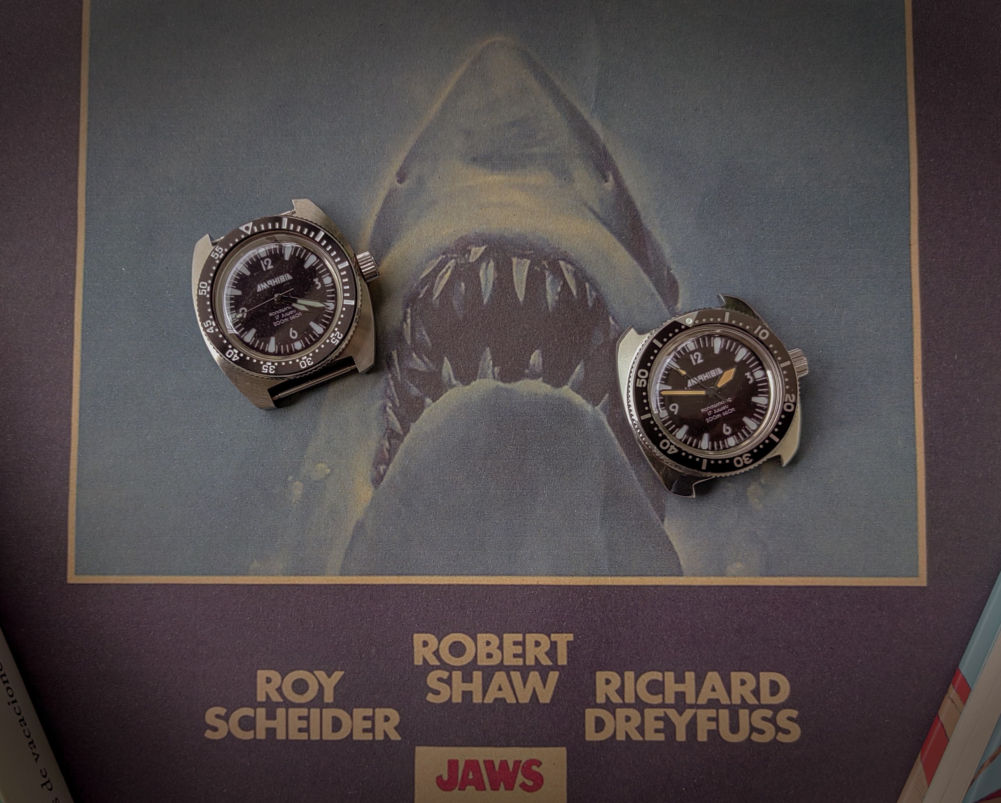 Os presento Vostok Amphibia “Jaws” mi humilde homenaje al Alsta Nautoscaph Superautomatic que llevaba Richard Dreyfuss, ya por el 2020 cuando Alsta sacó la redicion del mítico modelo le tenía ganas, pero el alto coste para mi economía me era imposible, así que el modelo no es lo mismo pero por lo menos me tranquiliza la CRI.