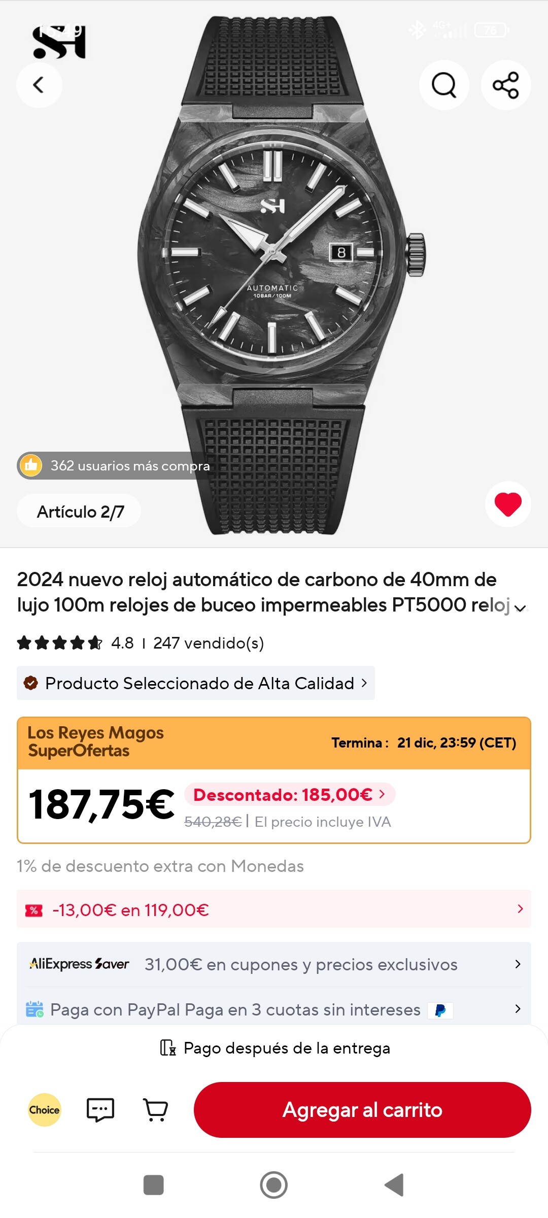 Si buscas carbono, hablas del tissot prx pero ese estaría fuera de tu presupuesto, tienes el homenaje chino de la marca SH con movimiento pt5000. Había uno a la venta en el foro o puedes encontrar alguna oferta por aliexpress.
