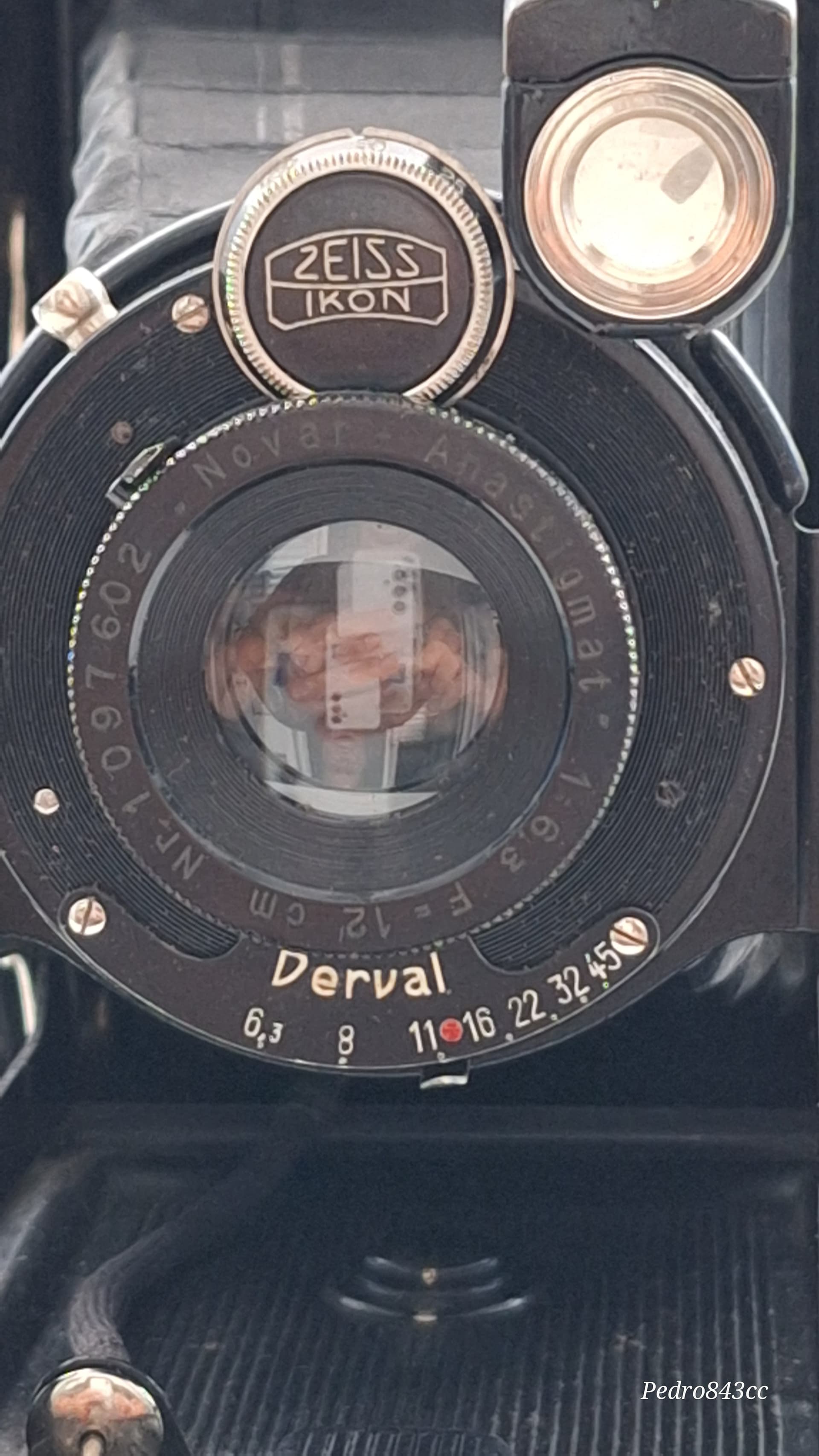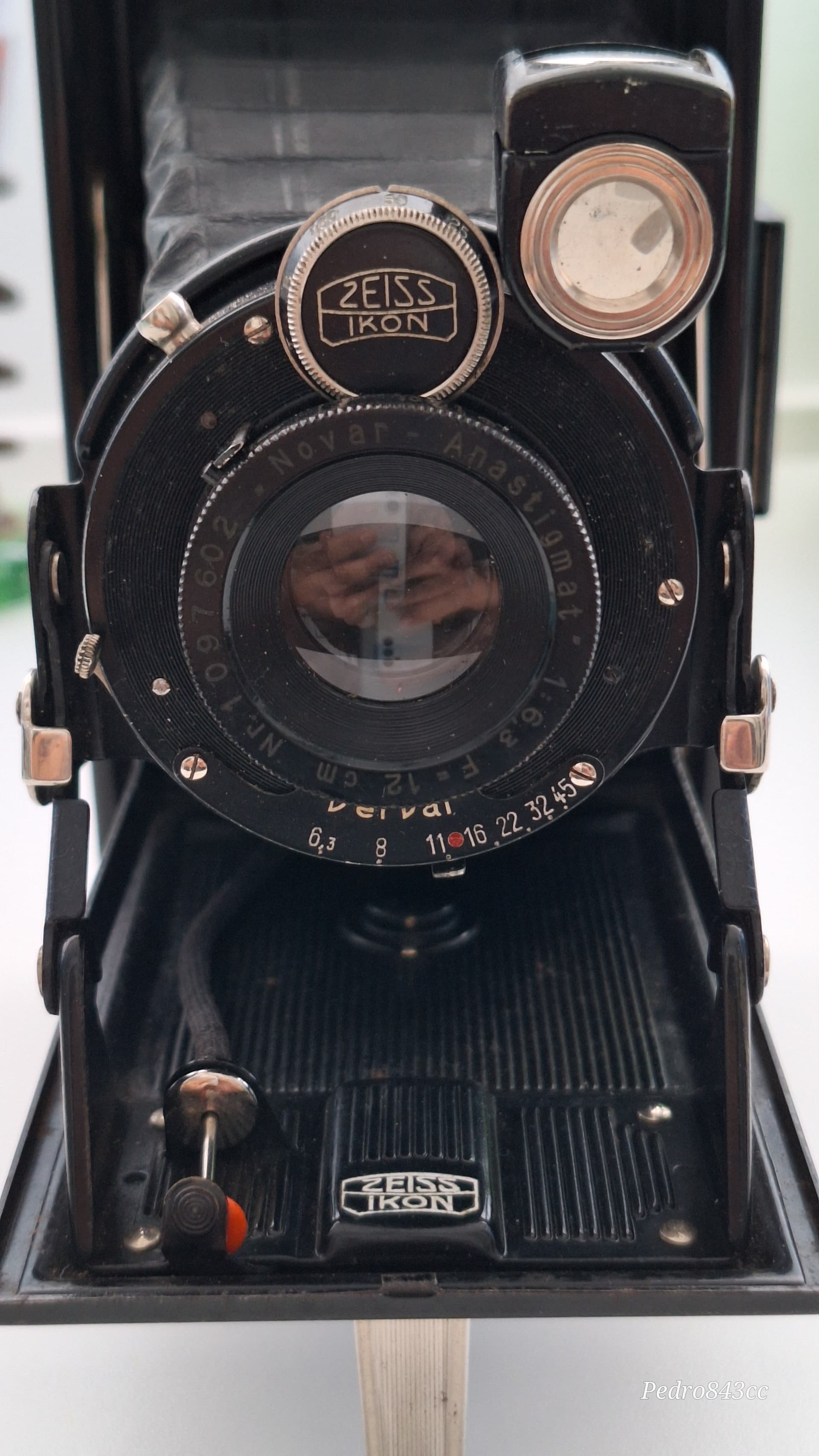Primero, esta veterana Zeiss Ikon Ikonta con obturador Derval con posiciones T, B, 25, 50 y 100, y lente Zeiss Novar Anastigmat F=12cm 1:6,3 en formato 6x9.