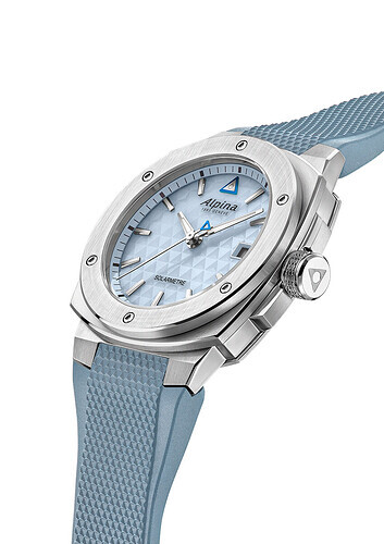 Pero el que más me ha sorprendido ha sido la versión solar del Alpiner, que incorpora un calibre solar La Joux Perret (vamos, un eco-drive con pegatina de suizo), y que tiene un diseño moderno y versátil con brazalete de acero o correas de caucho perfectamente integrados en la caja, y con unos colores bien chulos: