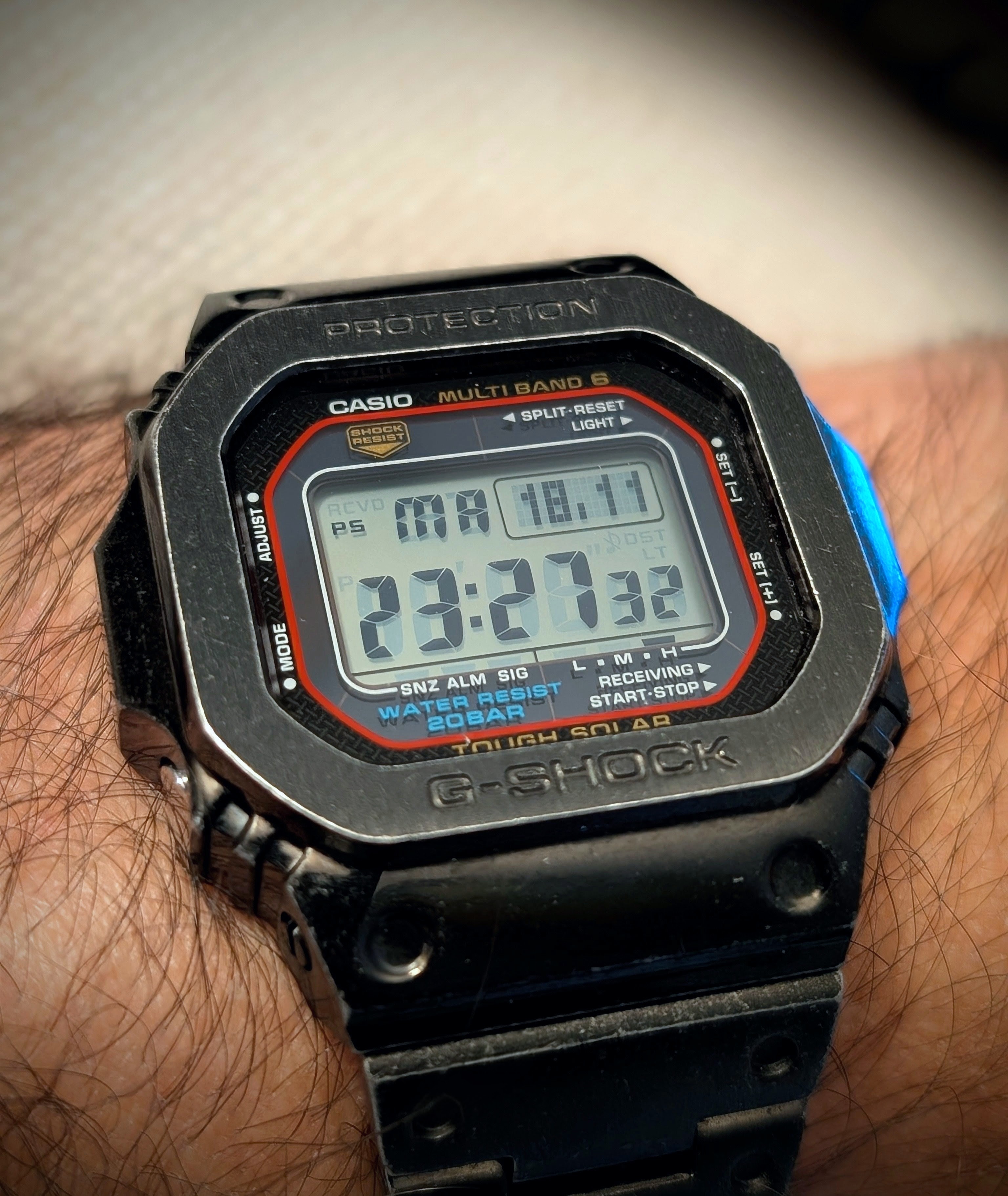 Soy un feliz poseedor del fantástico modelo GW-M5610U desde hace algo más de tres años. Este cuadrado lo tiene todo en cuanto a funcionalidades y tecnología, aguanta de todo y da un magnífico servicio en el día a día sin mayores preocupaciones. Un reloj para llevártelo a la muñeca y olvidarte. Mi primer G-Shock y mi primer digital, por lo que le tengo un cariño especial.