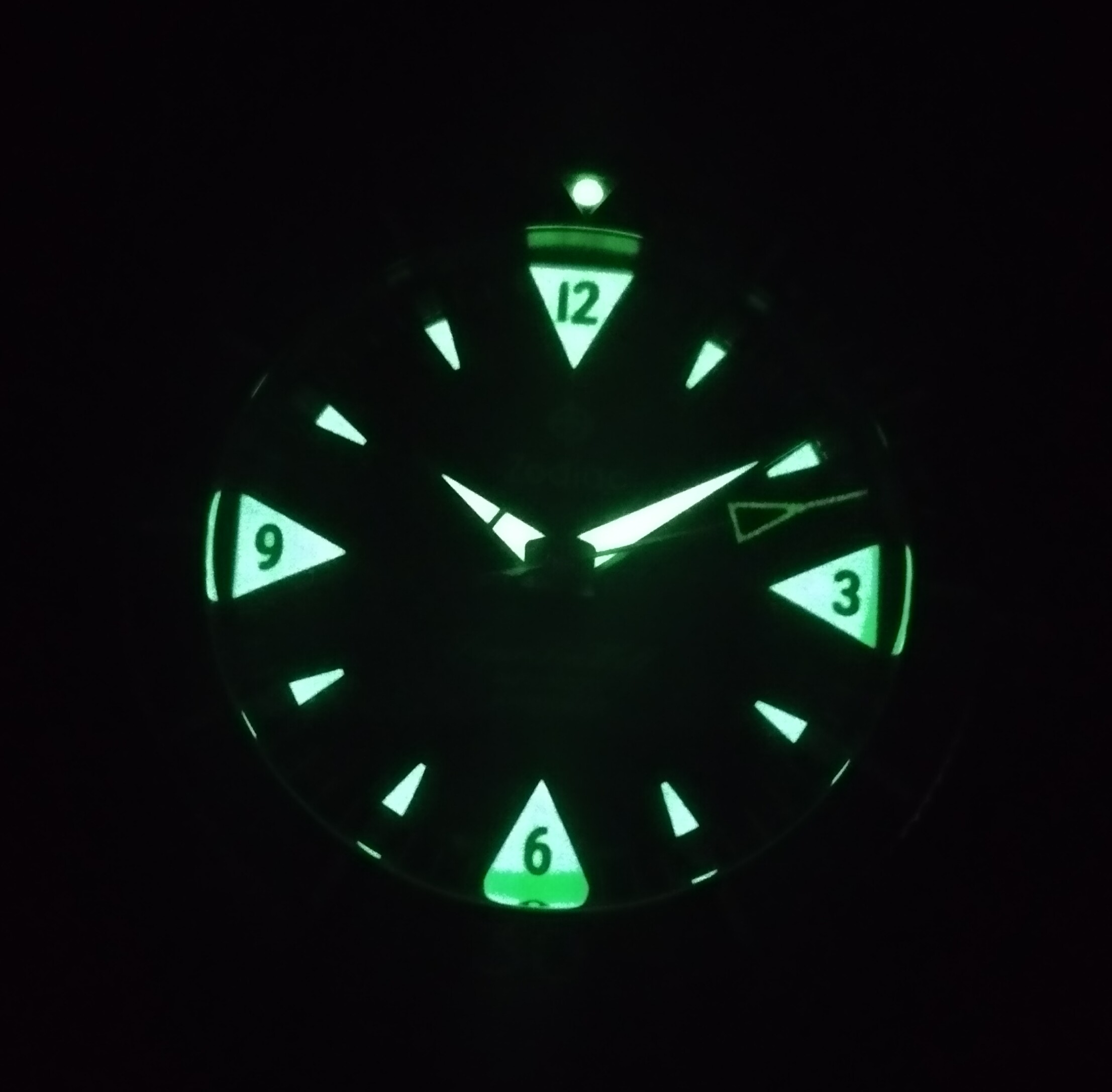 Pues muy chulo ese Zodiac, marca con historia especialmente en el segmento skindivers. Me laman especialmente la atencion, los quesitos en los cardinales, ya que me recuerdan a mi crono Kontiki, hasta la grafia es parecida.