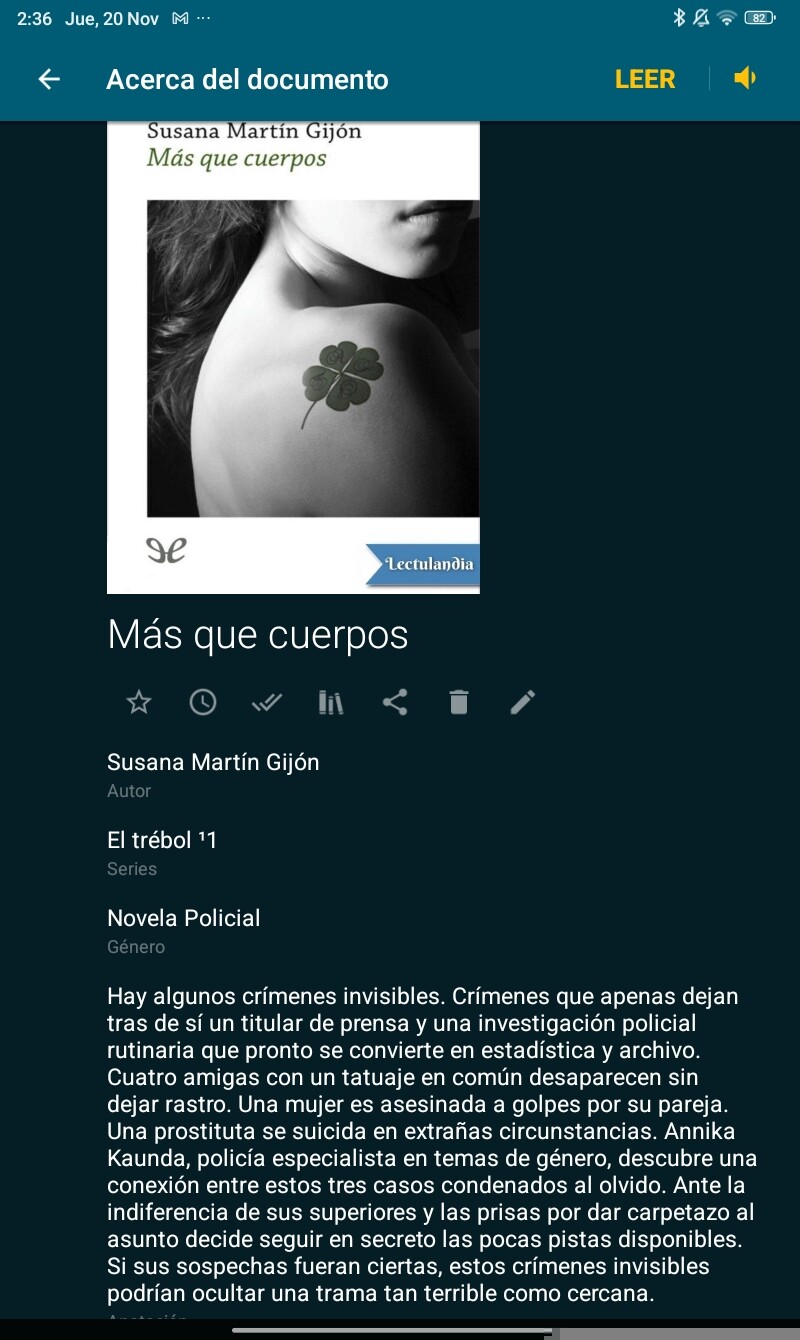 Acabo de terminar esta novela policiaca, entretenida y se lee de un tirón, temas actuales bien trabajados es el primer libro de esta escritora,hoy ya es tarde pero mañana empezaré el segundo “Desde la eternidad”,otra de mis recomendaciones,salut i força